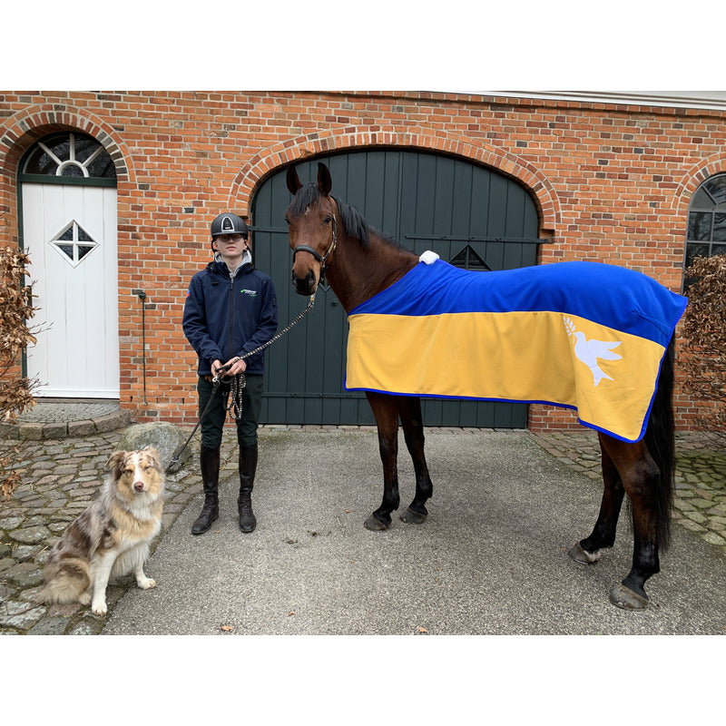 Von jeder verkauften Decke spenden wir 44,95 Euro an die Ukrainische Föderation für Reitsport, welche aktuell u. a. die Evakuierung der Pferde aus der Ukraine koordiniert und auch den Transport von Futterspenden organisiert.