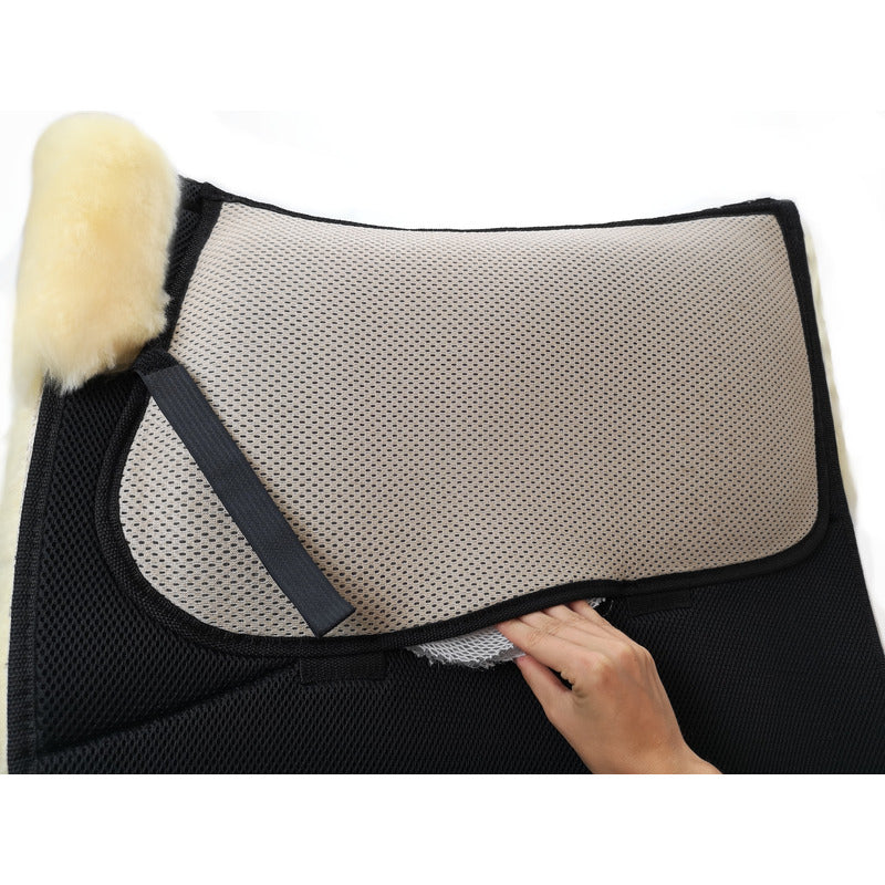 Die AirTec Linie ist einmalig in seiner luftzirkulierenden und atmungskativen Funktion. Ein dauerelastischer, hochwertiger Polymerkunststoff ist von beiden Seiten mit speziell entwickeltem Funktionsgewebe in dreidimensionaler, elastischer Struktur unterlegt. Die unterste Schicht besteht aus Lammfell mit einer fein perforierten Lederschicht. Während der natürlichen Reitbewegung zusammengedrückt gewinnt die Sattelunterlage bei der anschließenden Entlastung ihr ursprüngliches Volumen zurück. Durch diesen Pumpeffekt ensteht eine Ventilation und sogt für optimalen Luft- und Feuchtigkeitsaustausch.