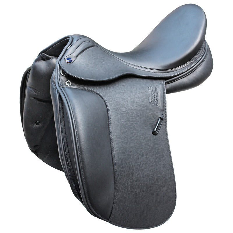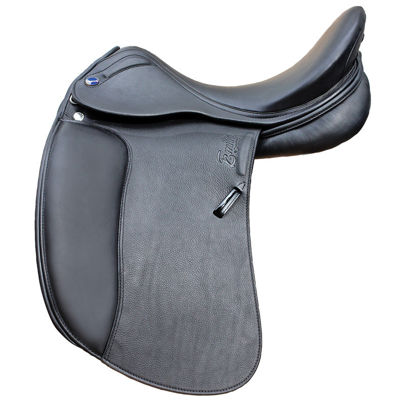 Gefertigt vom italienischen Markenhersteller Prestige in Zusammenarbeit mit Euroriding-Sattlermeistern! Dieses Modell garantiert optimale Schulterfreiheit für das Pferd. Der Sattelbaum bietet aufgrund der besonders schmalen Taillierung und dem tiefen Sitz einen erstklassigen Sitzkomfort. Volumen und Stabilität des Sattelkissens sorgen für komfortablen Kontakt und maximale Nähe zum Pferderücken. Mit doublierten Sattelblättern, attraktivem Kontrasteinsatz an der Bügelschlaufe und Verzierungen an der Efterkante. Der speziell modifizierte Gurtverlauf gewährleistet, dass die Sattelkissen optimal tragen und somit der Sattel ausbalanciert und schonend auf dem Pferderücken aufliegt.  Die durch Klettverschluss verstellbaren Pauschen bieten dem Reiter maximale Flexibilität.