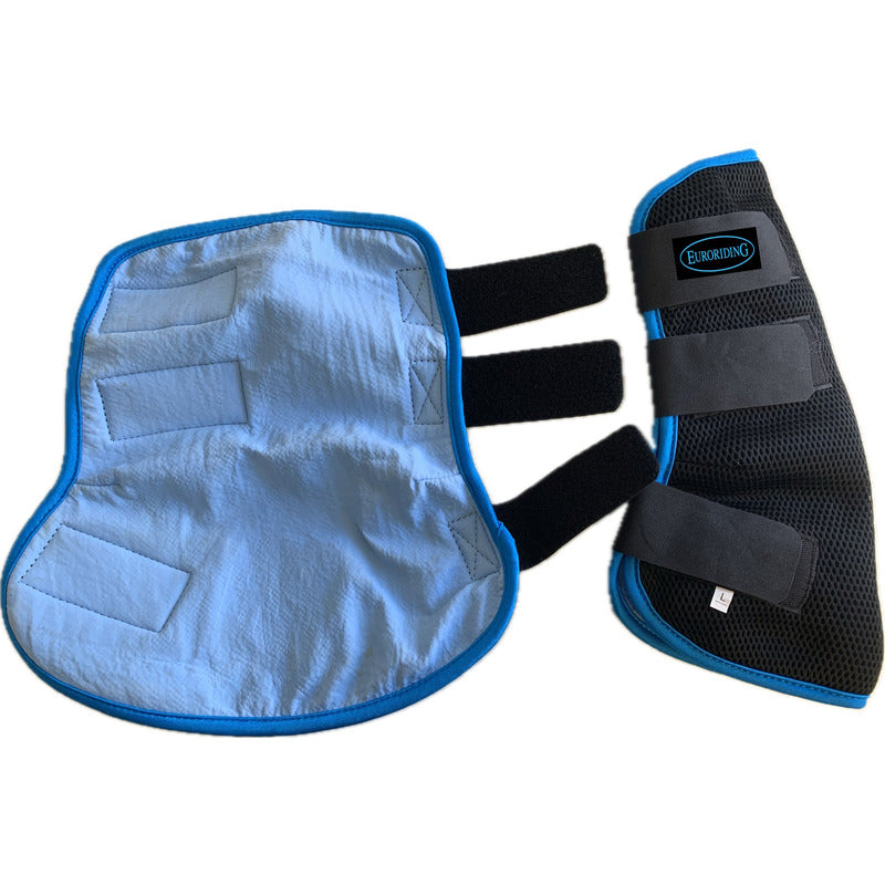 Die Luft hält das Gewebe kühl, sobald es durch Wasser aktiviert wurde. Das Netzgewebe außen ermöglicht einen konstanten Luftstrom zum Kaltwassermaterial und verlängert so den Kühleffekt der Gamaschen. Sobald das Kaltwassergewebe gesättigt ist, wird es aktiviert und bildet eine kalte, gepolsterte Schicht, die sich anatomisch an das Bein Ihres Pferdes anpasst. Die Blutzirkulation am Bein wird angeregt, was Schwellungen reduziert und den Heilungsprozess beschleunigt.