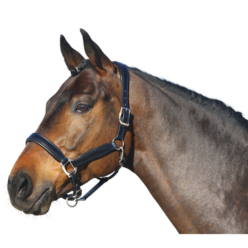 Silberne Beschläge beim braunen und schwarzen Halfter.