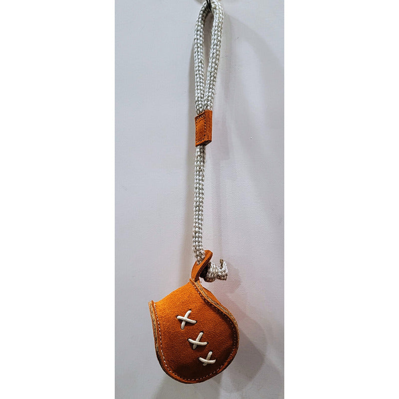 Der Ball ist an einer Schnur mit Schlaufe befestigt.