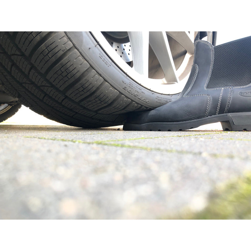 Die Stiefelette erfüllt die Norm ISO 20345:2011 SB + SRA.