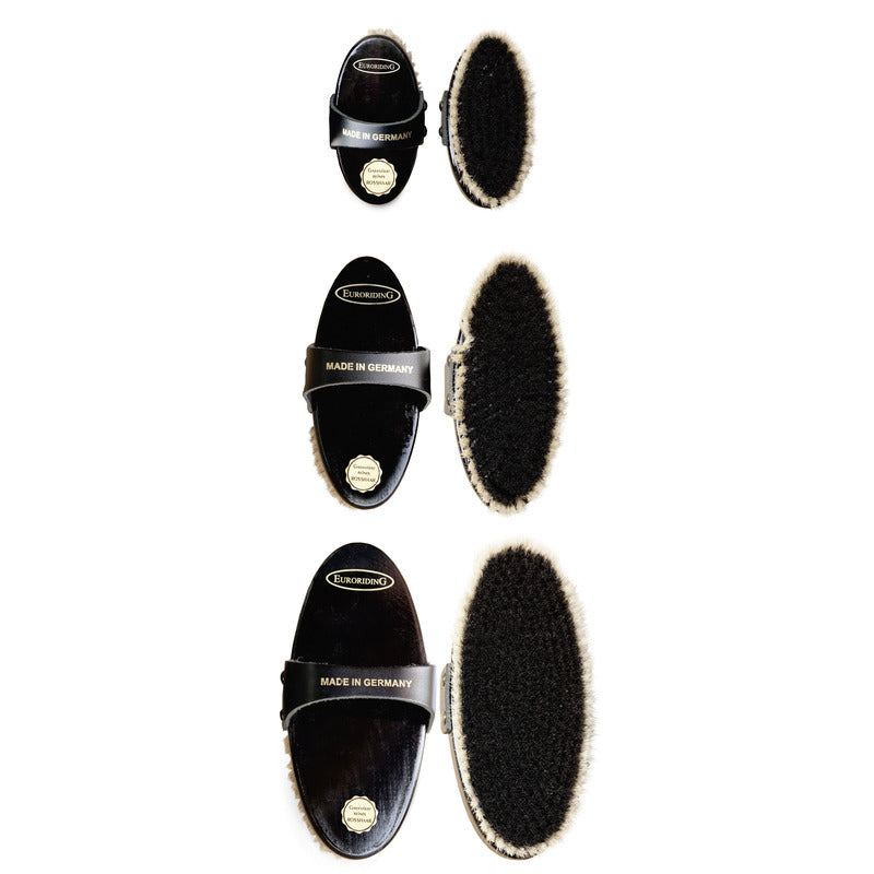 Die hochwertigen Kardätschen aus Rosshaarmischung polieren das Fell auf Hochglanz.
