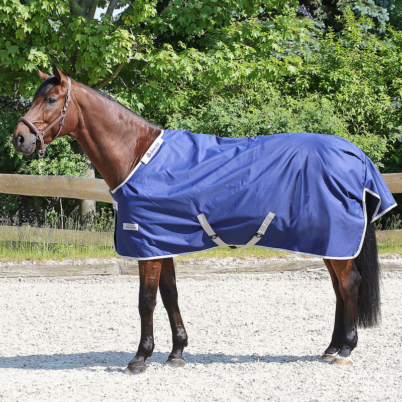 "Diese Decke wird von Bucas exklusiv für Euroriding produziert! Sie ist wind- und wasserdicht, wärmend und atmungsaktiv (ermöglich das Abschwitzen). Das Außenmaterial ist mit 1200 D extrem strapazierfähig. Das Stay-Dry-Innenfutter (220 g) hat eine antibakterielle Wirkung.