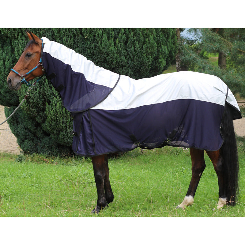 Die Kombi-Regen- und Fliegendecke besteht im Rückenbereich und am oberen Hals aus robustem, Sonne reflektierenden 600 Denier Oberstoff.