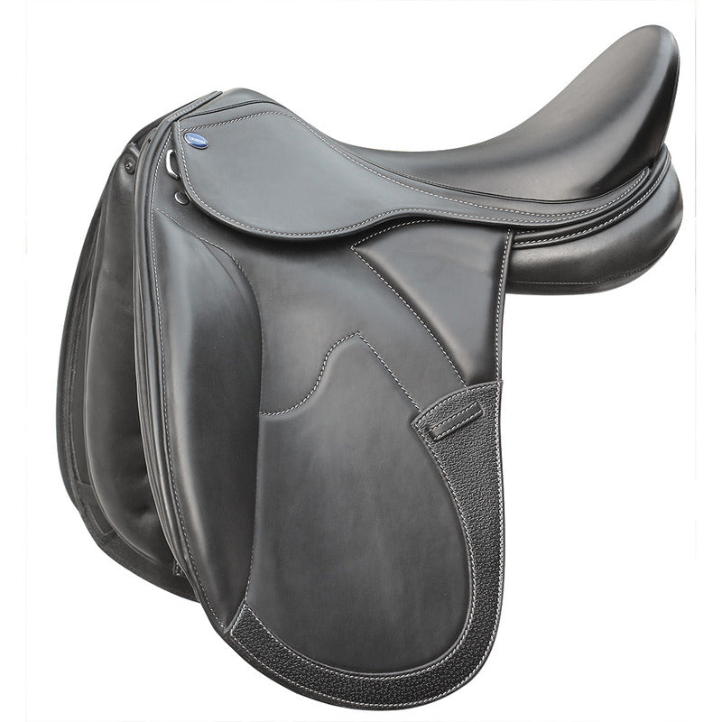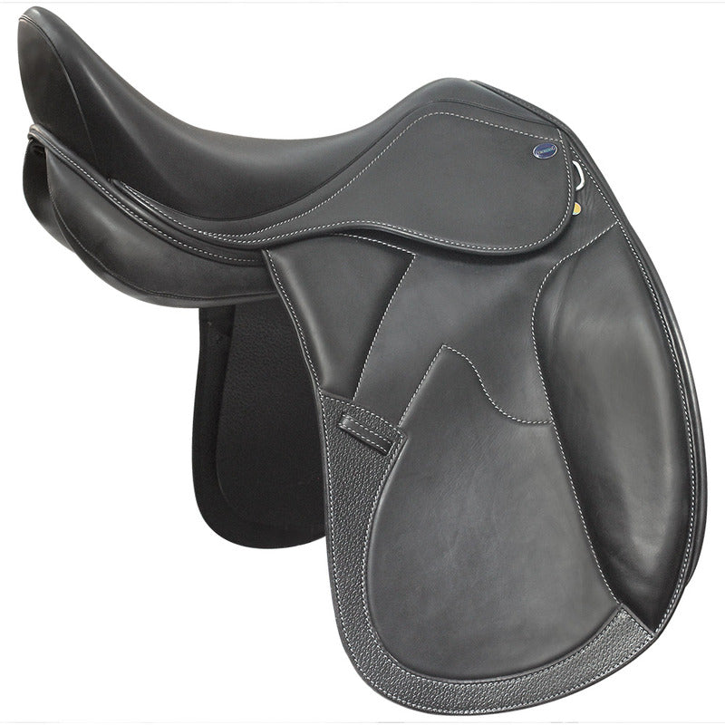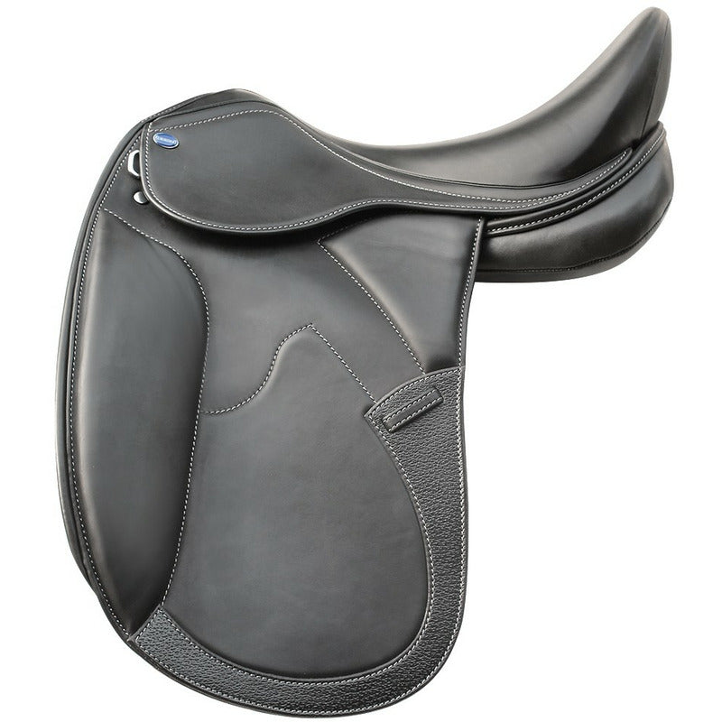 Ein moderner, doublierter Sattel für den ambitionierten Freizeitreiter. Der stahlverstärkte Kunststoff-Sattelbaum ist inklusive der Sturzfedern in Italien hergestellt. Das haltbare englische Sattelleder wird im Sitz- und Kniebereich durch weiches italienisches Kalbsleder ergänzt. Optimal für den modernen, kurzen Pferdetyp sind die französischen geteilten Sattelkissen. Ihre Polsterung mit synthetischer Wolle gewährleistet eine dauerhafte Formstabilität. Die Sattelbaumweite lässt sich maschinell ganz einfach anpassen, eine Erwärmung des Sattelbaums ist dafür nicht notwendig.