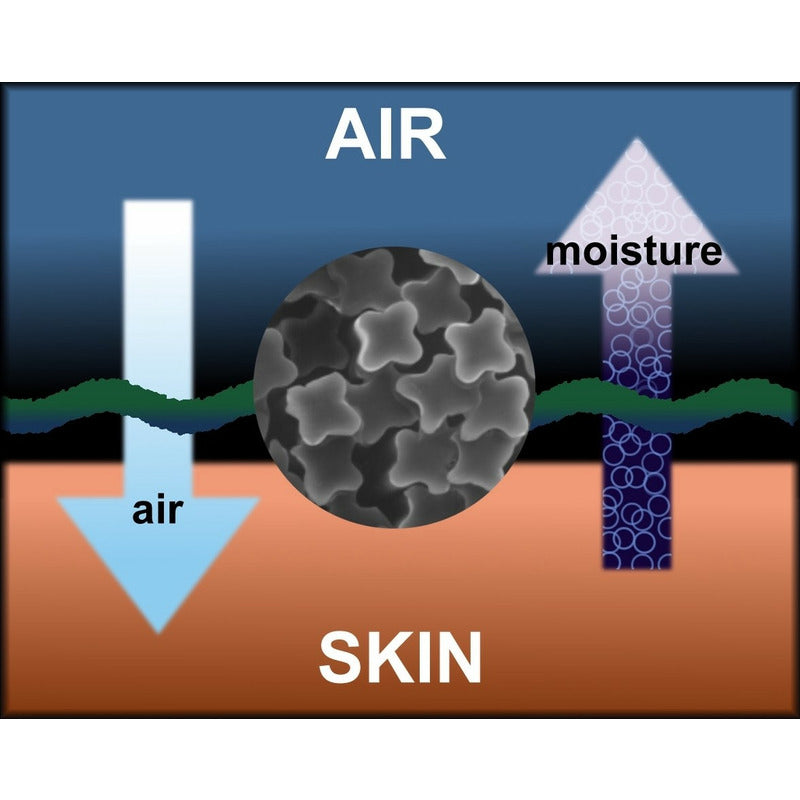 Der Schweiß wird nach außen transportiert und Außenluft wird an die Haut weitergegeben.