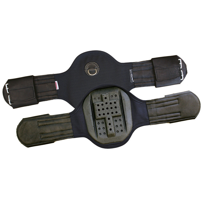 Zu enges Gurten mit nichtelastischen Sattelgurten verlangsamt den Blutkreislauf und damit die Sauerstoffversorgung der Muskeln, es behindert die Bewegungsfreiheit. Abhilfe schafft dieser vollelastische Sattelgurt, denn er übt weniger Druck auf die Brustmuskeln und das Brustbein aus. Das Pferd kann leichter atmen und sich besser bewegen. Besonders geeignet bei Rücken-, Bewegungs- und Atmungsproblemen, auch für chronische Bronchitiker zu empfehlen! Das Material ist ein hochwertiger spezieller Spinnstoff, der sowohl äußerst dehnbar als auch sehr fest und damit sicher ist. Die T-förmige Schaumstoffpolsterung im Bereich des Brustbeins verleiht dem Sitz von Gurt und Sattel Stabilität.