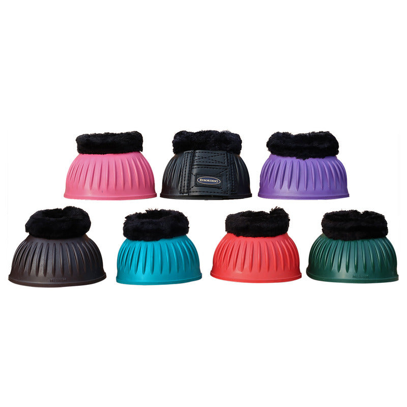 Hufglocken aus Gummi mit weicher Kunstfellrand-Polsterung zum Schutz der empfindlichen Pferdebeine.