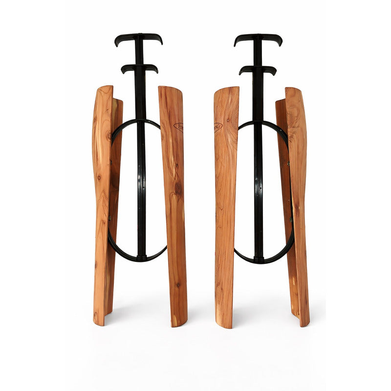 Hochwertige Stiefelspanner aus edlem Zedernholz. Der 34 cm hohe Spanner sorgt dafür, dass Ihre Stiefel lange schön bleiben. So können Sie die Stiefel optimal für eine lange Zeit aufbewahren. Das Holz nimmt Feuchtigkeit gut auf und verbreitet einen natürlichen, angenehmen Duft im Raum. Bei einer Bestellung erhalten Sie 2 Stiefelspanner. Durch den praktischen Griff können Sie die Stiefelspanner ganz leicht in den