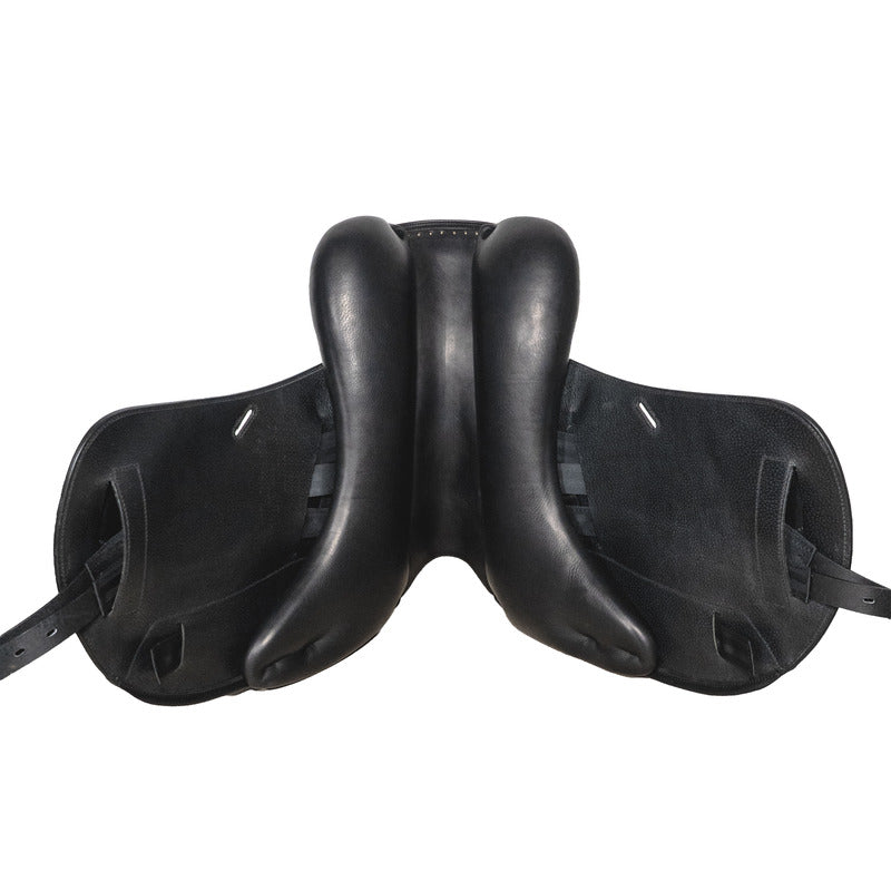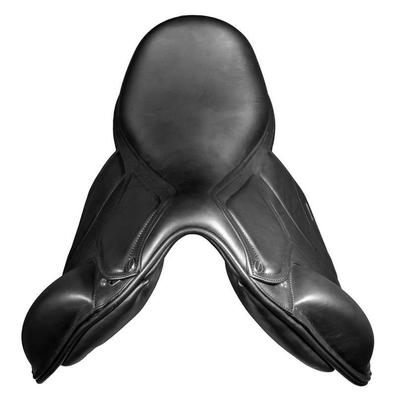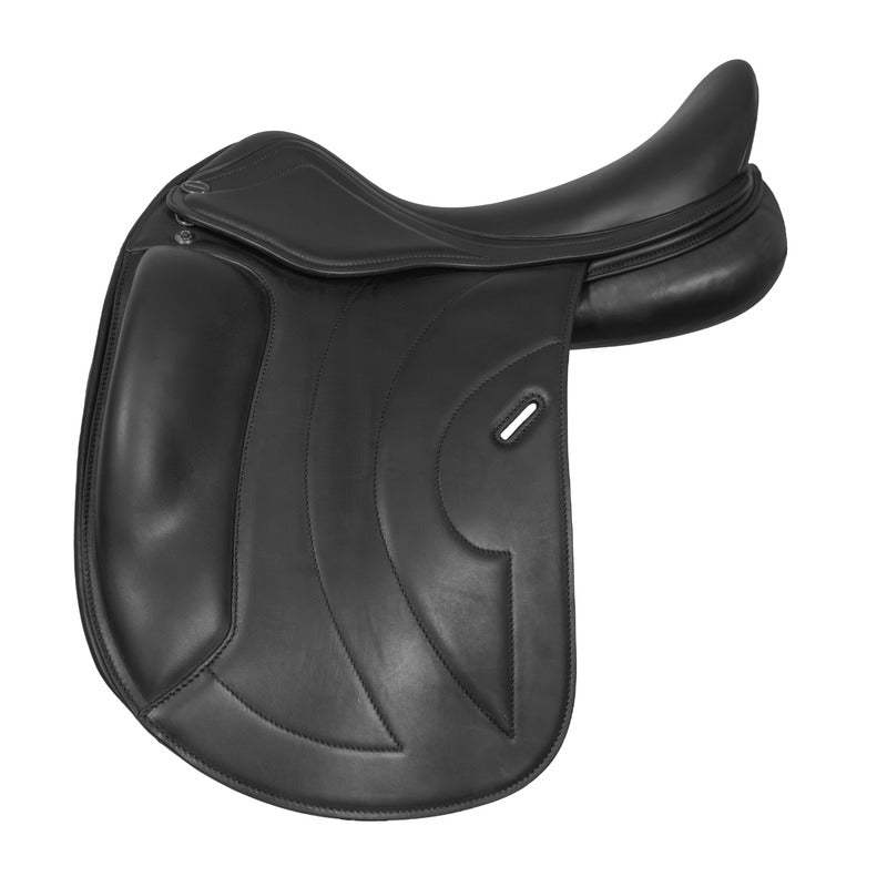 Sehr eleganter Monoblatt Dressursattel mit Holzbaum und tiefem Sitz.