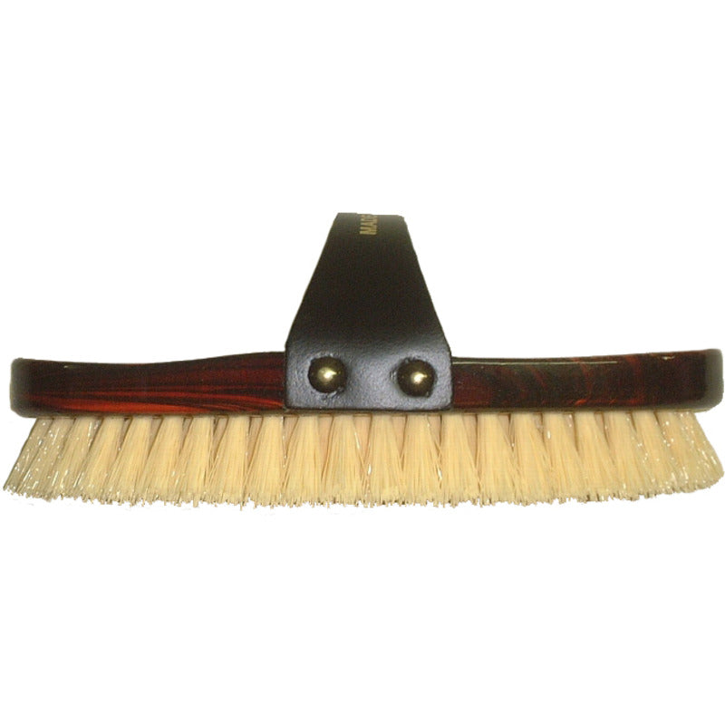 Die harten Kunststoffborsten dienen dem Lösen vom grobem Schmutz. Dank ihrer ergonomischen Form liegt diese Kardätsche besonders gut in der Hand. Mit lackiertem Holzrücken und ergonomischer Lederschlaufe.