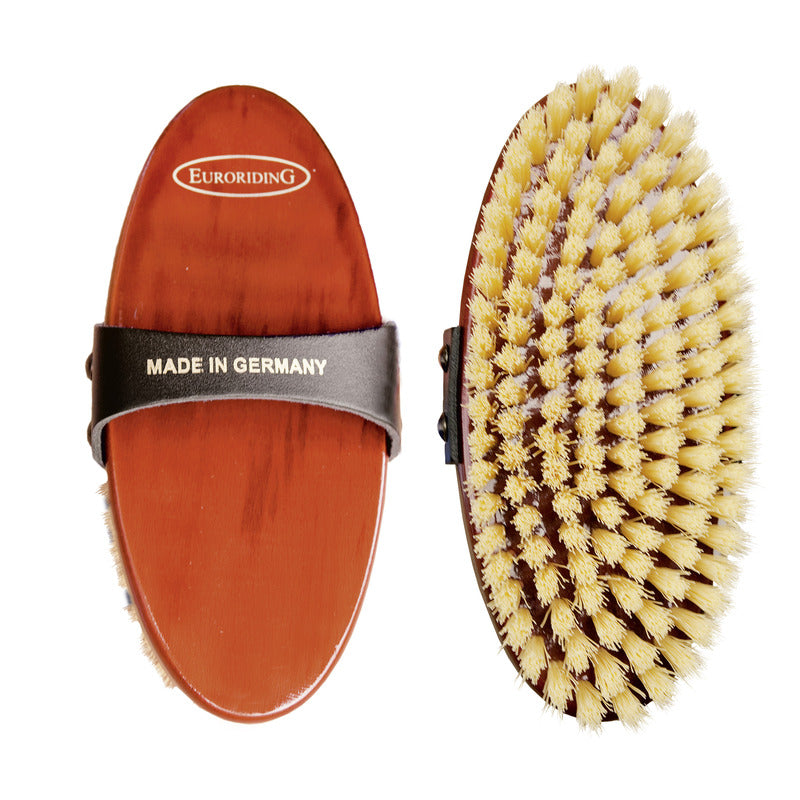 Die Kunststoffborsten lösen optimal den Schmutz vom Fell. Mit lackiertem Holzrücken aus Buche und ergonomischer Lederschlaufe.